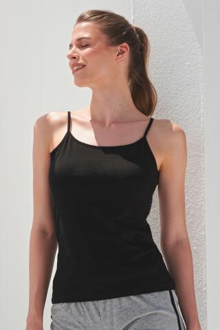 Eng und etwas länger geschnittenes Damen Spaghettiträger-Top in schwarz und in weiß