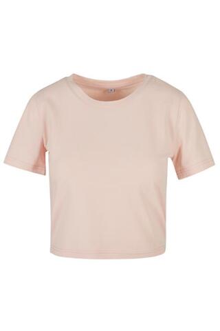 Bauchfreies Damen T-Shirt mit kurzen Ärmeln und etwas weiterem runden Ausschnitt.