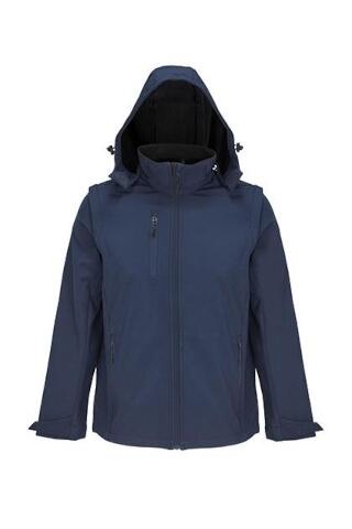 wasserdichte, atmungsaktive und winddichte Herren Softshelljacke mit abnehmbaren Ärmeln und abnehmbarer Kapuze. Die Outdoorjacke für Männer ist mit farblich abgestimmten Nylon-Reißverschlüssen vorn, an den Seitentaschen und an der Brusttasche mit einem farblich harmonierenden Schiebergriff aus Metall mit reflektierendem Band ausgestattet. Die Ärmel und die Kapuze sind abnehmbar, so dass die Jacke schnell zu einer Weste umfunktioniert werden kann. Die elastische Kapuze und der untere Saum haben verstellbare Enden. Verstellbare Klett-Bündchen an den Ärmeln sorgen für Schutz gegen Wind und Wasser. Außerdem ist eine Innentasche mit Nylon-Reißverschluss in die Jacke eingarbeitet.