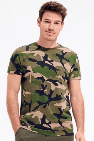 Herren Kurzarm Camouflage T Shirt aus ringgesponnener, halbgekämmter Baumwolle