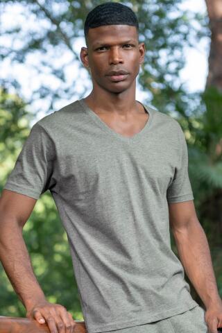 Herren T Shirt aus Baumwolle mit V Ausschnitt für schlanke Männer (Slim fit)