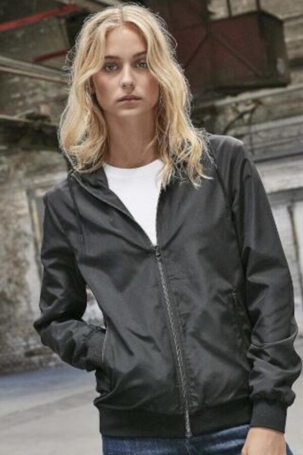 Nachhaltig produzierte, gerade geschnittene Damen Kapuzen-Windjacke aus zu 37% recycelter Kunstfaser. Die Windjacke für Frauen ist mit einer Kapuze mit Kordel, Mesh-Futter, Ripp-Bündchen am Saum und an den eingesetzten Ärmeln, einem durchgehenden Reißverschluss sowie Seitentaschen mit Reißverschluss ausgestattet.