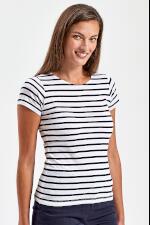 Farbe: Gestreift; Größe: ab XS; Kragen/Ausschnitt: Rundhals, weit; Schnitt: tailliert