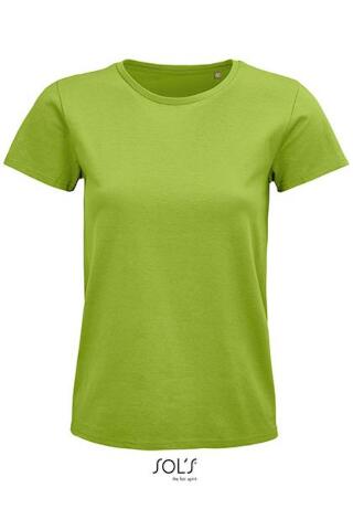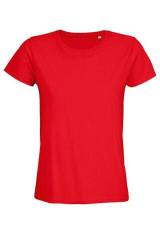 Damen Kurzarm T-Shirt aus 100% halbgekämmter Bio-Baumwolle mit natürlichem Enzym für weichen Griff in 1x1-Ripp Jersey-Qualität. Das moderne T-Shirt für Frauen ist mit einem runden Halsausschnitt, kurzen, weiteren Ärmeln, einem Reinigungsband am Halsausschnitt sowie Kragenbündchen aus Baumwoll-Ripp gearbeitet. Das Baumwoll-Shirt ist ohne Seitennähte aus Schlauchware hergestellt. Es hat kein Label-Etikett in den Nacken eingenäht.