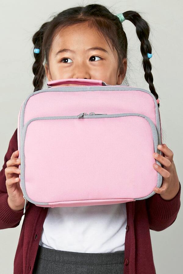 Vollständig isolierte kleine Kühltasche für das Mittagessen bei der Arbeit. Die praktische Kühlbox ist aus 600D Polyester mit PEVA-Futter hergestellt und BPA- und Phthalat-frei. Sie ist in ein Reißverschluss-Hauptfach und ein Reißverschluss-Vorderfach eingeteilt. Die Innenseite ist auswischbar. Innen ist auch ein Namensschild angebracht. Die kleine Kühltasche hat oben einen Haltegriff. Ihr Volumen fasst ca. 3 Liter bei einer Größe von 24 x 20 x 8 cm. Sie wird unter fairen Arbeitsbedingungen produziert und ohne Inhalt/Dekoration geliefert.