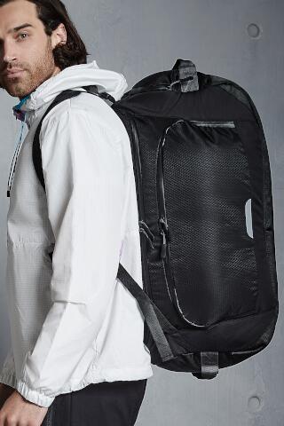 Die Reisetasche kann in der Hand am gepolsterten Handgriff oder aber für längere Strecken bequem mit den umwandelbaren Rucksack-Riemen über beide Schultern getragen werden.